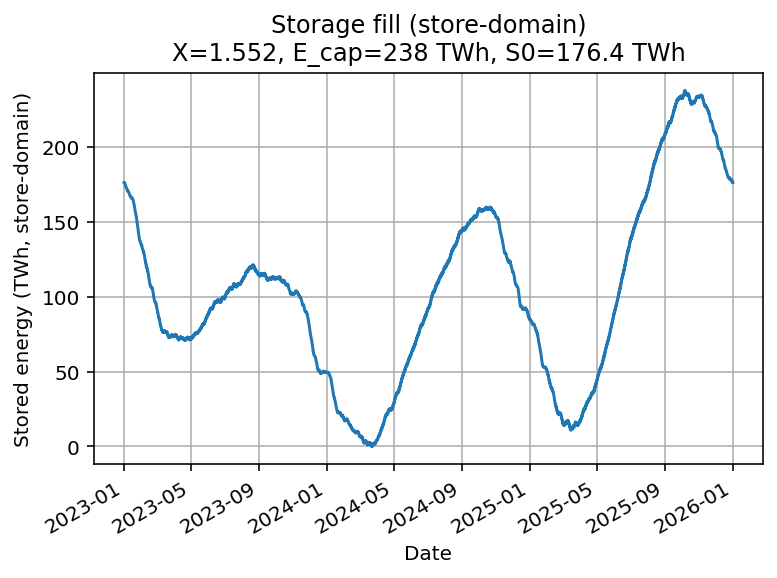 X=1.5525 | E_cap=238.0 TWh | S0=176.4 TWh | eta_in=1.000, eta_out=1.000 | minS=0.00 TWh, maxS=238.04 TWh
